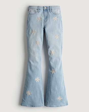 Girls High Rise Light Wash Floral Embroidery Flare Jeans Girls Bottoms Hollisterco Com